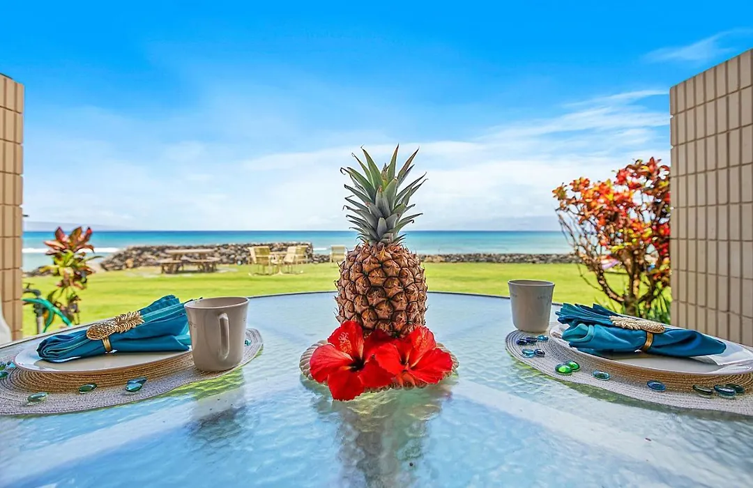 Kaleialoha 106 Ocean Front 1Bd 1Ba apartment is a 5-minute drive from Kapalua airport.